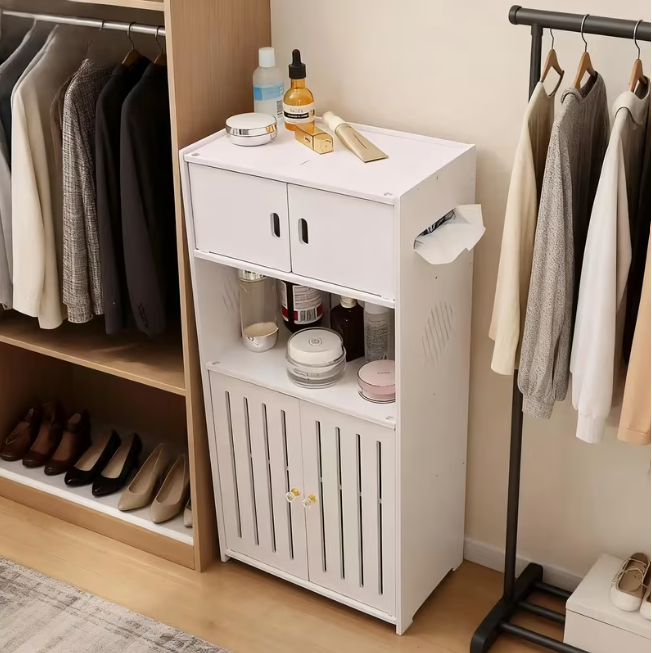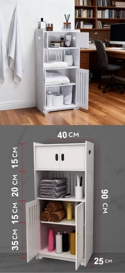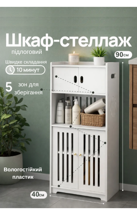 Вологостійка шафа для ванної кімнати — практичне та стильне рішення для організації простору. Завдяки 4 окремим зонам зберігання ви зручно розмістите рушники, косметику, побутову хімію та аксесуари.