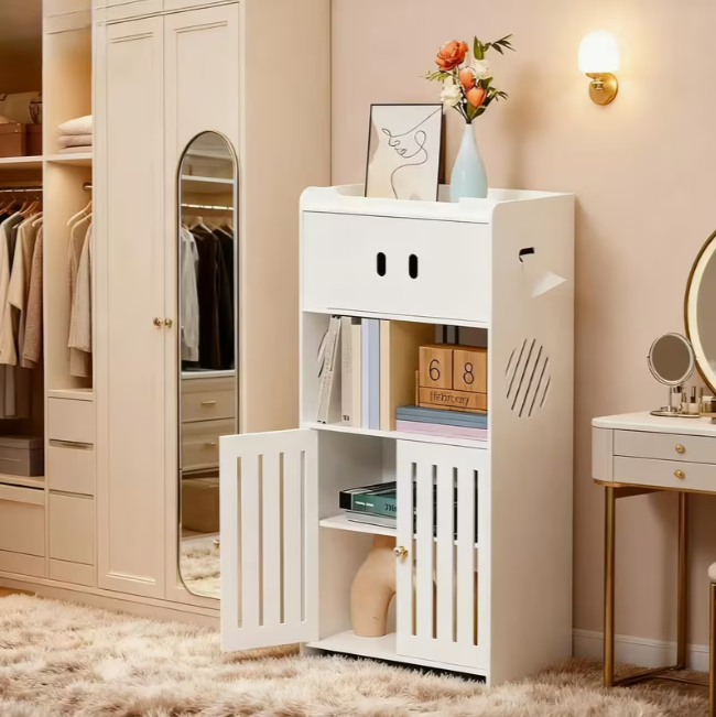 Компактні габарити дозволяють встановити шафу навіть у невеликій ванній, а закрита конструкція захищає речі від вологи та пилу. Лаконічний білий дизайн гармонійно вписується в сучасні інтер’єри та створює відчуття чистоти й порядку.